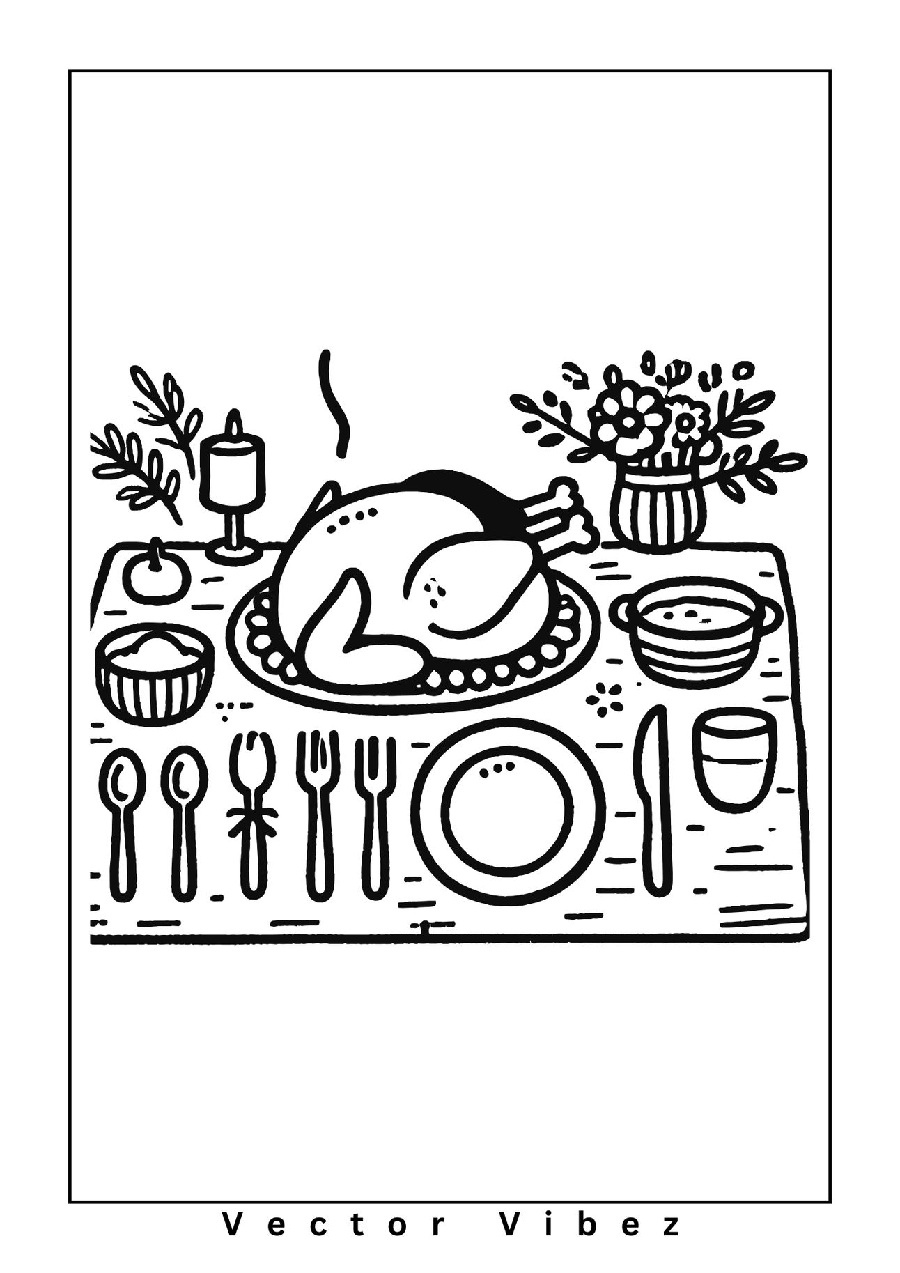 Thanksgiving is just around the corner, and weβve got the perfect coloring pages to capture the holiday spirit! π This week, weβre featuring festive designs that are sure to bring smiles to your family table. From a classic Thanksgiving table setting to a rustic tractor with a pumpkin, a proud turkey centerpiece, and even a fun football display, thereβs something for everyone to enjoy. These pages are perfect for keeping kids entertained or adding a creative touch to your Thanksgiving preparations. Download your favorites and let the holiday fun beginβhappy coloring and happy Thanksgiving from all of us at Vector Vibez! π¦π¨